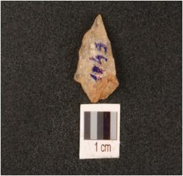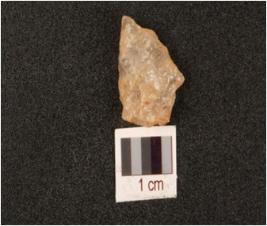 | Description / विवरण | A flake made on quartz with smooth surface and used wear marks on working edge. |