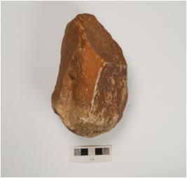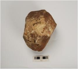 | Description / विवरण | A core made on quartzite flake with flake scars on all side and retouched along edges. |