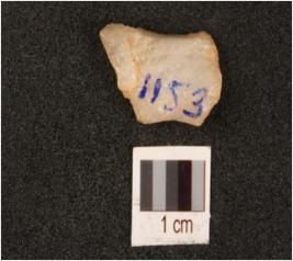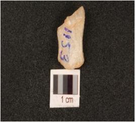 | Description / विवरण | A quartz flake with smooth surface and used wear marks on one end. |