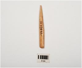 | Description / विवरण | Bone point with polished surface, partly broken pointed end, rectangular in section and light brown in colour. |
