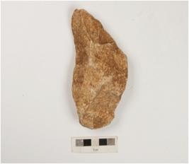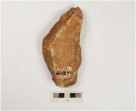 | Description / विवरण | Bifacial hollow scraper made on quartzite with flake scars on both sides and edges are prepared by applying alternate flaking technique. |