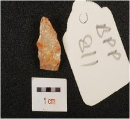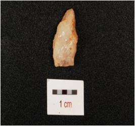 | Description / विवरण | Flake made on quartz. Prepared platform, Diffused bulb on ventral side and use wear mark along cutting edges. |