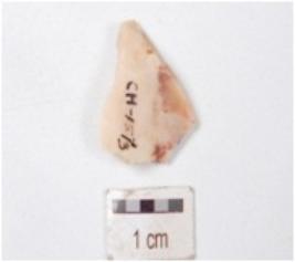 | Description / विवरण | Flake made on chert with flake scars on the surface, prepared platform and diffused bulb. |