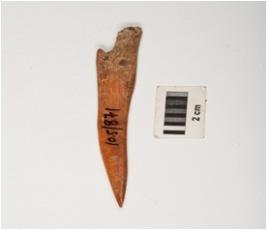 | Description / विवरण | Bone point with polished surface, pointed end and partly broken broad end. |