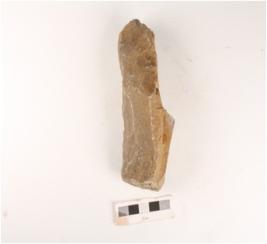 | Description / विवरण | A bifacial handaxe made on quartzite with flake scars on dorsal and ventral with prepared platform and irregular retouches on working edge. |