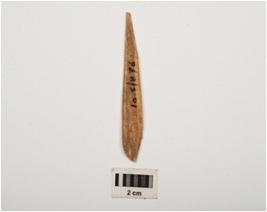 | Description / विवरण | Bone point with polished and flat surface, partly broken from both pointed and flat ends, rectangular in section, cream in colour. |