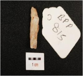 | Description / विवरण | Flake made on quartz. Prepared platform, Diffused bulb on ventral side and use wear mark along cutting edges. |