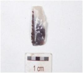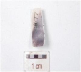 | Description / विवरण | Blade made on chert, ridge on the dorsal side and user marks on the working edges. |