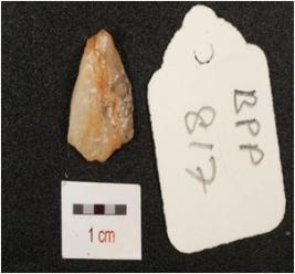 | Description / विवरण | Flake made on quartz. Prepared platform, Diffused bulb on ventral side and use wear mark along cutting edges. |