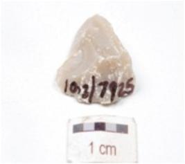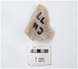 | Description / विवरण | Flake made on chert, flake scars on the surface, prepared platform and diffused bulb. |