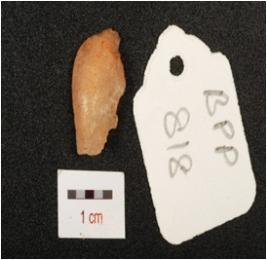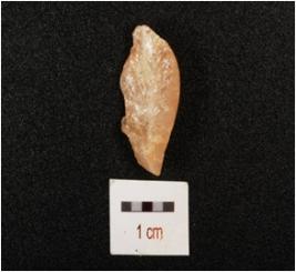 | Description / विवरण | A Scraper made on quartz. Diffused bulb on ventral side and use wear mark along cutting edges. |