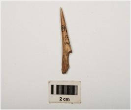 | Description / विवरण | Bone point with smooth surface and polished towards pointed end. Partly broken at other end and surface. |