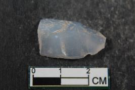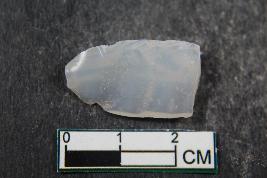 | Description / विवरण | A fragment of blade having one dorsal ridge, bulb of percussion on ventral side and smooth surface. |