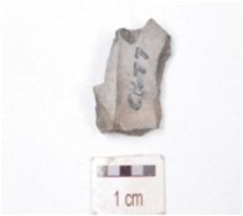 | Description / विवरण | Flake made on chert, flake scars on the surface, prepared platform and diffused bulb. |