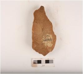 | Description / विवरण | Miniature handaxe made on quartzite flake by soft hammer technique, flake scars on both sides, retouches along the cutting edges and prepared platform. |