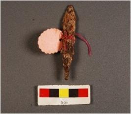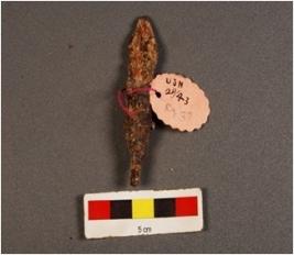 | Description / विवरण | Iron arrow head, pointed top, slightly rod is visible, fragile, rusted. |