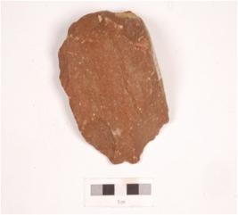| Description / विवरण | A scraper on end struck flake flake scars on both dorsal and ventral sides, diffused bulb on ventral irregular retouches along the working edge and cortex on the dorsal side. |
