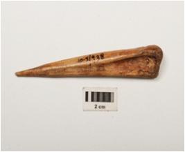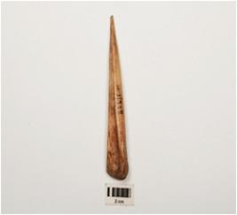 | Description / विवरण | Bone point, one end is thick, smooth and polished surface with groove line on one side. |