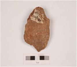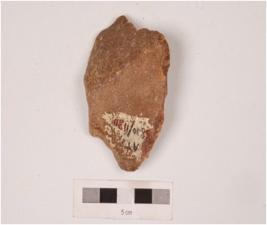 | Description / विवरण | A quartzite stone scraper with prepared platform, made on end struck flake, diffused bulb on ventral and irregular retouches on cutting edges. |