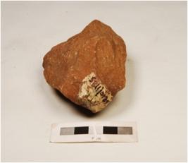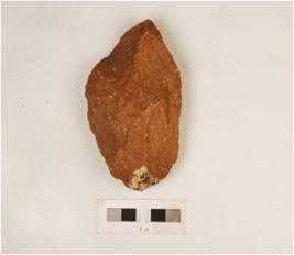 | Description / विवरण | A handaxe made on quartzite stone, flaking marks on both sides and irregular edges. |