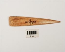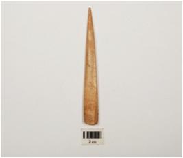 | Description / विवरण | Bone point, pointed one end, groove line on one side, polished surface. |