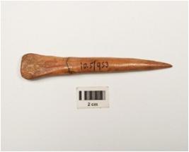 | Description / विवरण | Bone point, pointed one end, other end is thick, mended, polished surface and rectangular in section. |