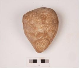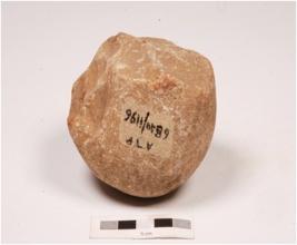 | Description / विवरण | A chopping tool made on quartzite with flake scars on the surface and thick butt end. |