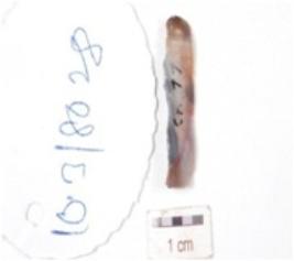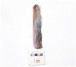 | Description / विवरण | A chert blade, ridge on dorsal, ventral is smooth with diffused bulb on ventral and use wear marks on edge. |