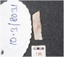 | Description / विवरण | A chert blade, mid ridge on dorsal, ventral is smooth and use wear marks on edge. |
