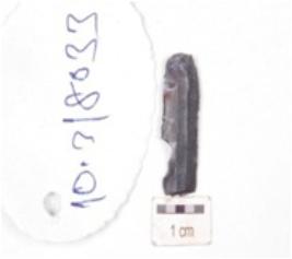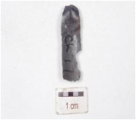 | Description / विवरण | A chert blade, mid ridge on dorsal, ventral is smooth, prominent bulb on ventral and use wear marks on edge. |