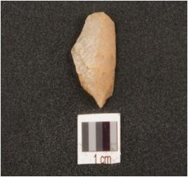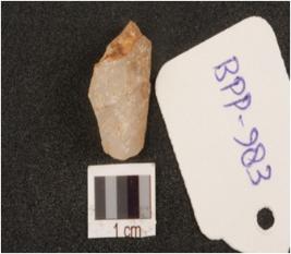 | Description / विवरण | A quratz flake, with irregular shape and cortex on dorsal surface. |