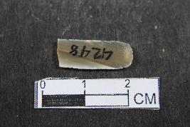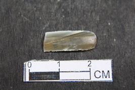 | Description / विवरण | Fragment of blade with two dorsal ridges and smooth surface. |