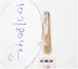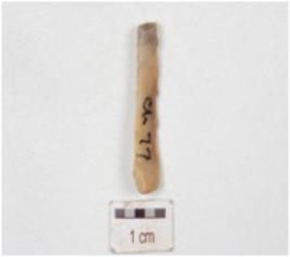 | Description / विवरण | A blade made on chert, mid ridge on dorsal, ventral is smooth and use wear marks on edge. |