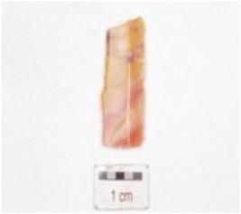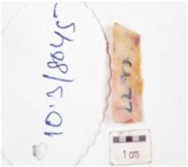 | Description / विवरण | A blade made on chert, mid ridge on dorsal, ventral is smooth and use wear marks on edge. |