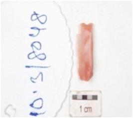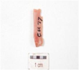 | Description / विवरण | A blade made on chert, mid ridge on dorsal, ventral is smooth with diffused bulb and use wear marks on edge. |