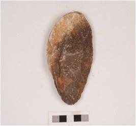 | Description / विवरण | A miniature handaxe made on quartzite, pear-shaped with flake scars on the surface, sharp cutting edges and cortex intact. |