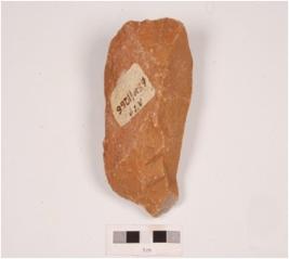 | Description / विवरण | A handaxe, made on side struck flake with alternate flakes on both side and irregular retouches at cutting edges. |