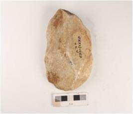 | Description / विवरण | A unifacial scraper on end struck flake with flake scars on dorsal, bulb on ventral and irregular retouches on broad working edge. |
