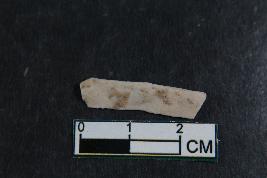 | Description / विवरण | A fragment of a blade having two dorsal ridges with bulb of percussion. It has smooth surface. |
