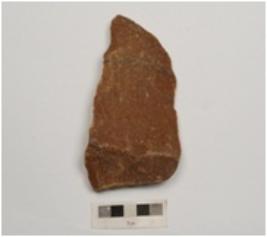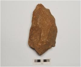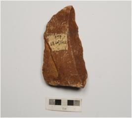| Description / विवरण | A handaxe made on quartzite flake with flake scars on both side and retouched edges. |