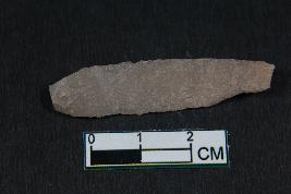 | Description / विवरण | Fragment of a Blade with one dorsal ridge having smooth surface. It also has bulb of percussion on the ventral side. |
