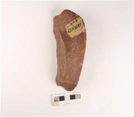 | Description / विवरण | A side scraper on end struck flake with prepared platform, flake scars on both sides and irregular retouches on cutting edge. |