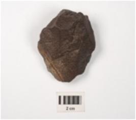 | Description / विवरण | A side scraper made on stone with irregular retouches on edges, flake scars on dorsal, prepared platform and cortex visible on distal end. |