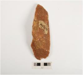 | Description / विवरण | A handaxe made on quartzite pebble by soft hammer technique, flake scars on both side and sharp cutting edges on both side. |