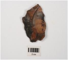 | Description / विवरण | A end scraper made on chert with use wear marks on working edge, flake scars on dorsal and smooth ventral. |