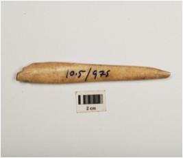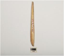 | Description / विवरण | A arrowhead made of bone, one end is sharp pointed and other one is thicker, smooth surface, brown in colour and well polished surface. |