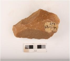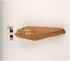 | Description / विवरण | Miniature handaxe made on quartzite flake and ware cutting edges. |
