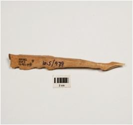 | Description / विवरण | A arrowhead made of bone, one end is sharp pointed and other one is thicker, light brown in colour and well polished surface. |