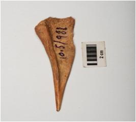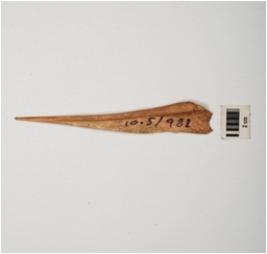 | Description / विवरण | A awl made of bone, one end is sharp pointed and other one is thicker, brown in colour and well polished surface. |