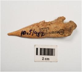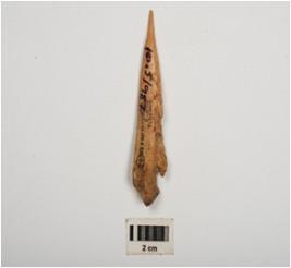 | Description / विवरण | A awl made of bone, one end is sharp pointed and other one is thicker, light brown in colour and well polished surface. |